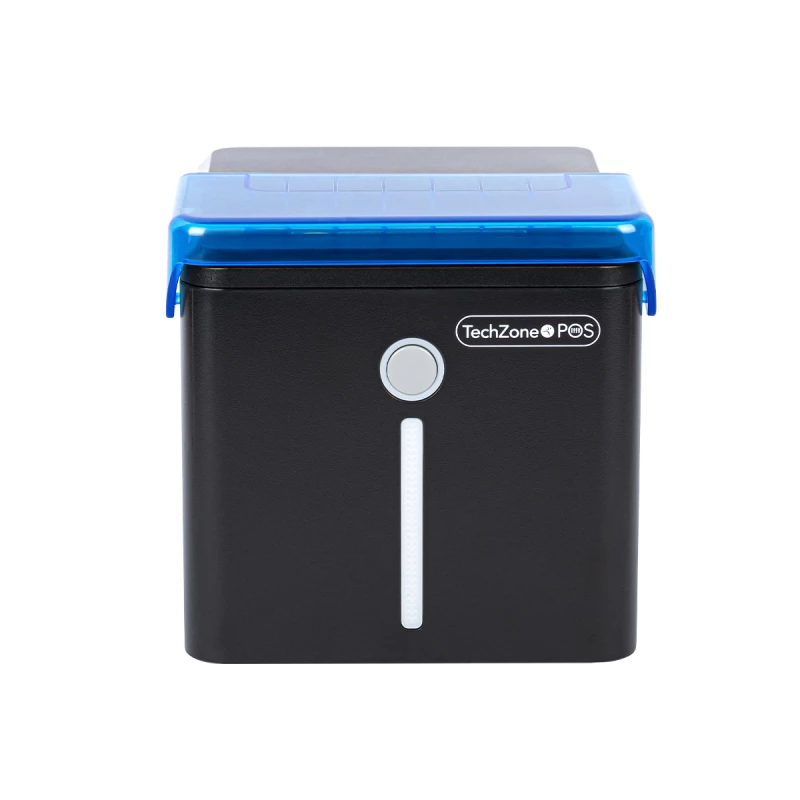 TechZone TZPOIMW. Tecnología de impresión: Térmica directa, Tipo: Impresora de TPV, Resolución máxima: 203 x 203 DPI. Grosor de la impresión: 80 µm, Máximo diámetro del rollo: 8.3 cm, Ancho de papel soportado: 80 mm. Tecnología de conectividad: Inalámbrico y alámbrico, Tipo de serie de interfaz: RJ-11. Código de barras incorporado: CODABAR (NW-7), Code 128 (A/B/C), Code 39, Code 93, EAN13, EAN8, ITF, UPC-A, UPC-E, Memoria interna: 0.144 MB, Vida útil del cabezal de impresión: 150 kilometros. Color del producto: Negro, Azul