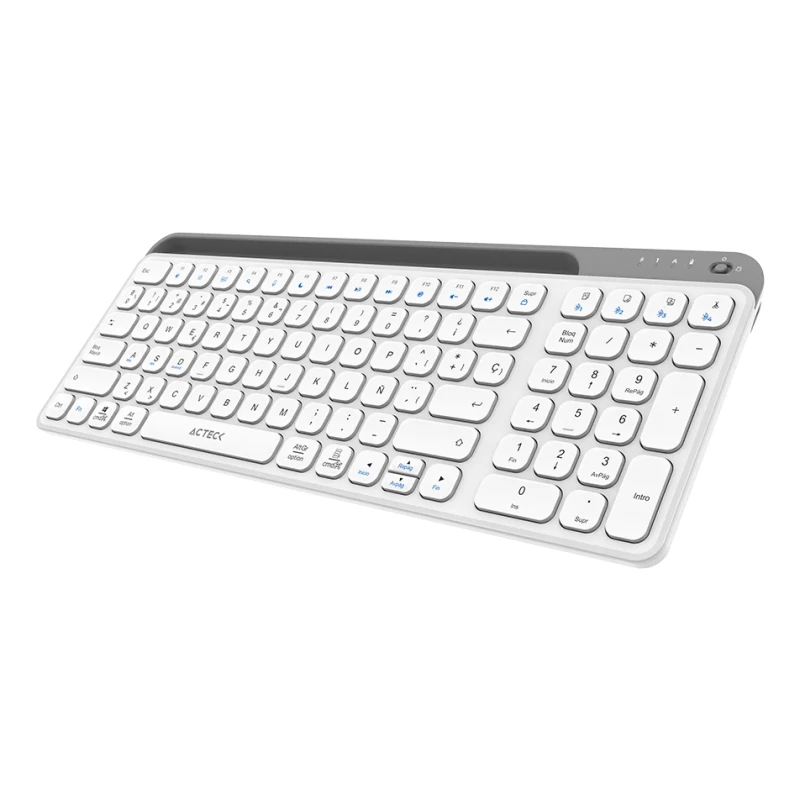 Acteck Inspire Trek TI747 teclado Universal RF inalámbrico + bluetooth QWERTY Español Gris, Blanco