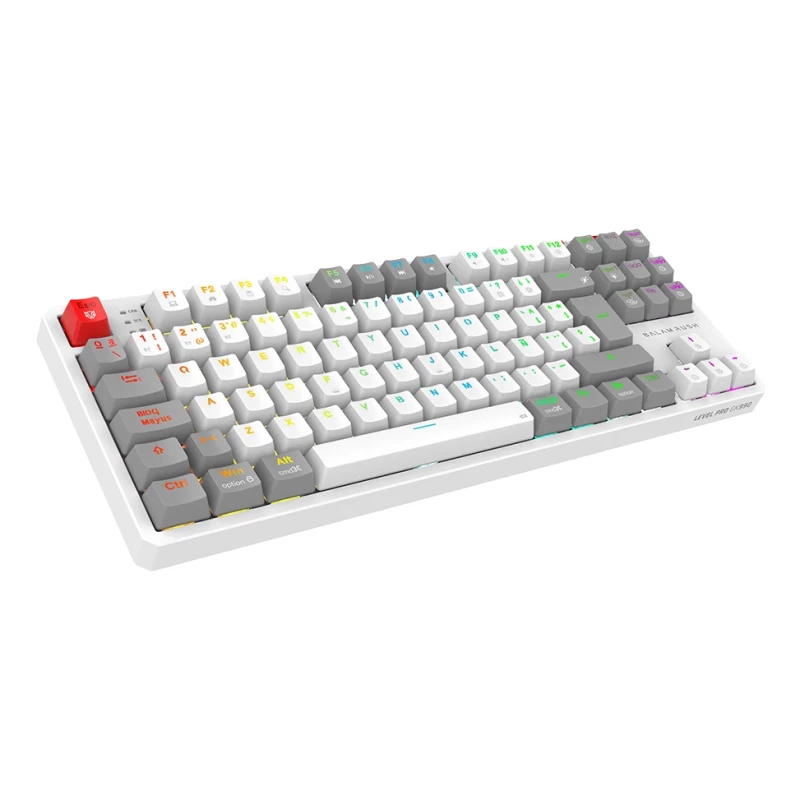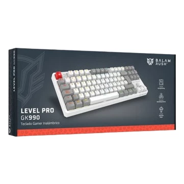 Balam Rush Level Pro GK990. Formato del teclado: 80%, Tecnología de conectividad: Inalámbrico y alámbrico, Interfaz del dispositivo: RF inalámbrico + bluetooth, Interruptor del teclado: Interruptor mecánico, Diseño de teclado: QWERTY, Teclado, cantidad de teclas: 88. Tipo de retroiluminación: LED RGB. Longitud de cable: 1.8 m. Uso recomendado: Juego. Color del producto: Gris, Blanco