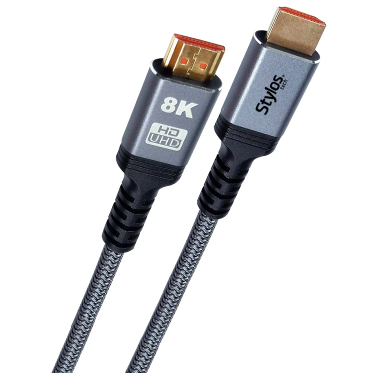 Stylos STACHD4B. Longitud de cable: 2 m, Conector 1: HDMI Tipo A (Estándar), Género del conector 1: Macho, Conector 2: HDMI Tipo A (Estándar), Género del conector 2: Macho, Versión HDMI: 2.1, Velocidad de transferencia de datos: 48 Gbit/s, Color del producto: Negro