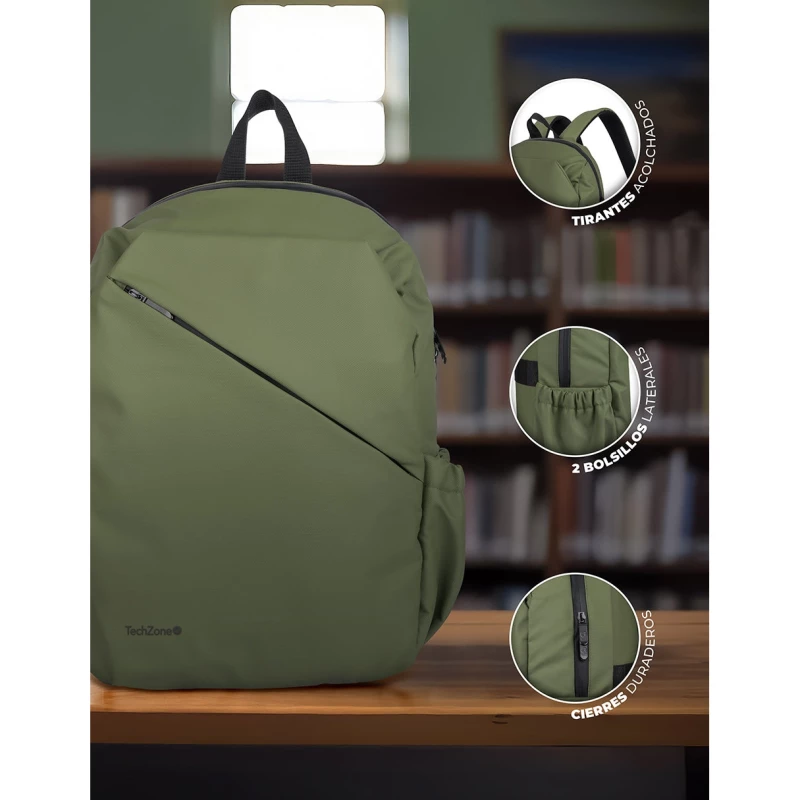 TechZone TZLBP29-V. Color principal del producto: Verde, Coloración: Monocromático, Género recomendado: Unisex. Ancho: 300 mm, Profundidad: 140 mm, Altura: 440 mm. Materiales: Poliéster