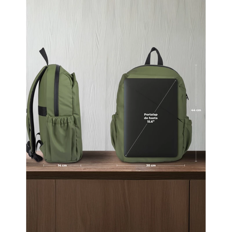 Backpack diseñada con materiales resistentes a salpicaduras para brindar durabilidad y protección. Compatible con laptops de hasta 16”, cuenta con cierres duraderos y compartimientos internos acolchonados que garantizan la seguridad de tu equipo. Además, ofrece dos prácticos compartimientos laterales para botellas y un compartimiento frontal en diagonal para acceso rápido a tus pertenencias. Su diseño funcional y elegante la convierte en la opción perfecta para el trabajo, la universidad o tus viajes diarios.
