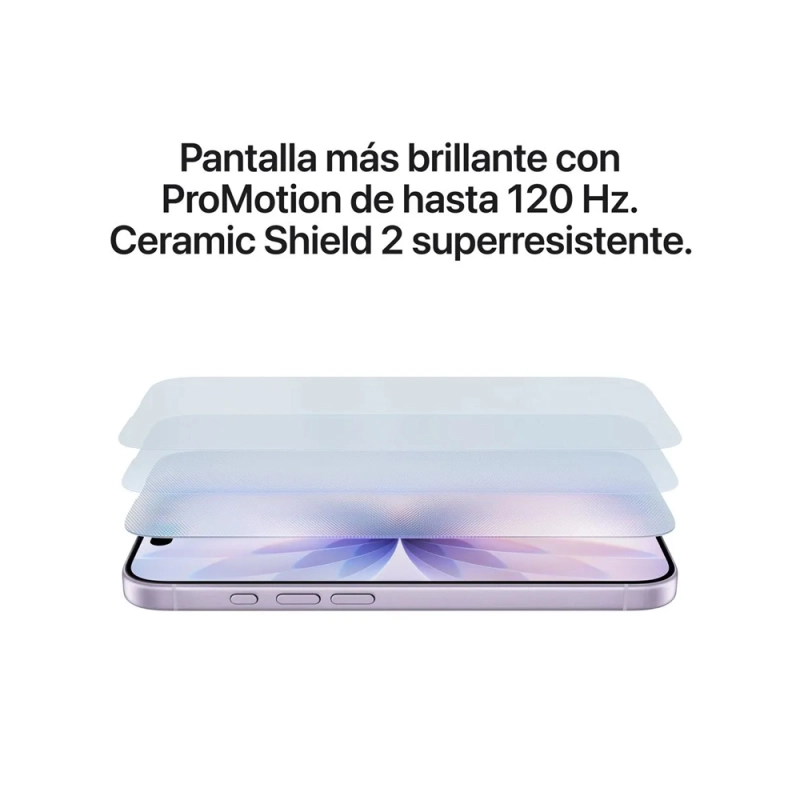 El iPhone 17 destaca por la inclusión de tecnología ProMotion de 120 Hz en su pantalla de 6.3 pulgadas y 12 GB de RAM para una ejecución fluida de Apple Intelligence. Equipado con el chip A19, ofrece un rendimiento eficiente y una cámara frontal mejorada de 24 MP. Su diseño en aluminio y vidrio cuenta con certificación IP68 y soporte para Wi-Fi 7, garantizando máxima velocidad y durabilidad.