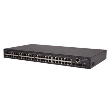 H3C S5130S-52S-EI. Tipo de interruptor: Gestionado, Capa del interruptor: L2. Puertos tipo básico de conmutación RJ-45 Ethernet: Gigabit Ethernet (10/100/1000), Cantidad de puertos básicos de conmutación RJ-45 Ethernet: 48. Bidireccional completo (Full duplex). Tabla de direcciones MAC: 16000 entradas, Capacidad de conmutación: 176 Gbit/s. Estándares de red: IEEE 802.1AX, IEEE 802.1D, IEEE 802.1Q, IEEE 802.1ab, IEEE 802.1ag, IEEE 802.1ak, IEEE 802.1p,.... Montaje en rack
