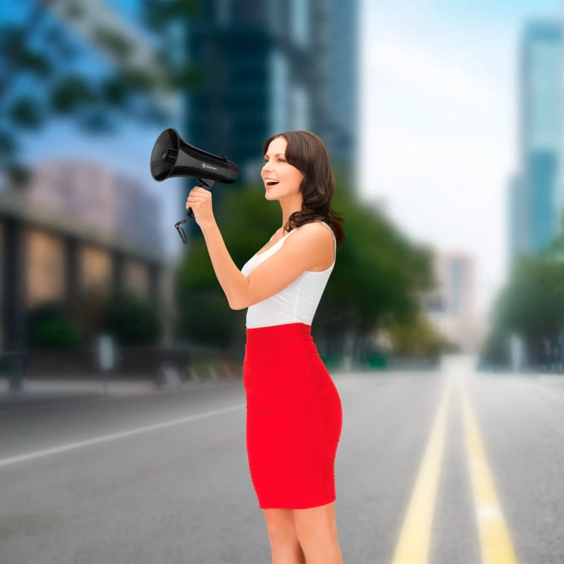Buena potencia: Te sorprenderá con su excelente volumen para transmitir tu mensaje con una potencia de 5 watts. También incorpora la función de sirena. Es de tamaño compacto y tiene una agarradera plegable.