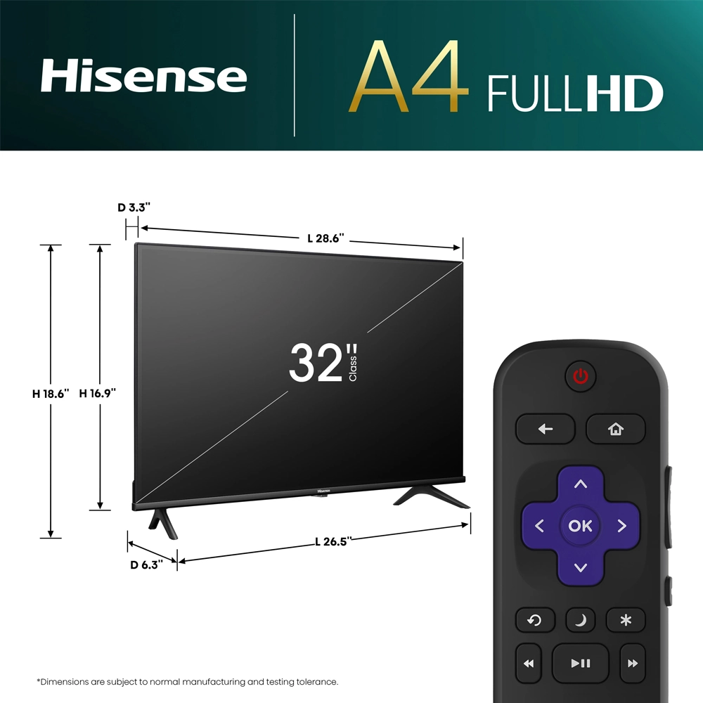Televisor Smart TV Hisense 32A4NR LED 32 Pulgadas HD Roku TV Negro
