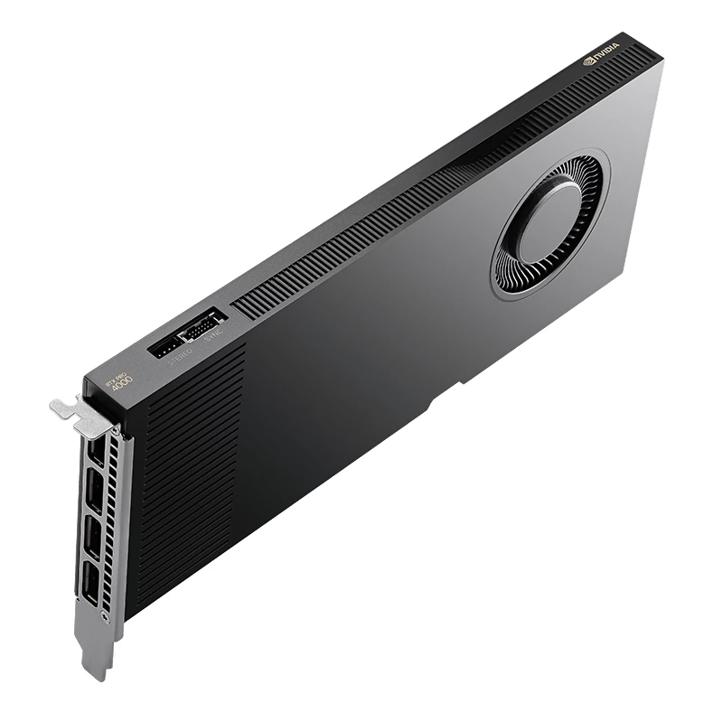PNY RTX PRO 4000 Blackwell. Familia de procesadores de gráficos: NVIDIA, Procesador gráfico: RTX PRO 4000. Capacidad memoria de adaptador gráfico: 24 GB, Tipo de memoria de adaptador gráfico: GDDR7, Bus de memoria: 192 Bit. Máxima resolución: 7680 x 4320 Pixeles. Versión DirectX: 12.0, Versión OpenGL: 4.6. Tipo de interfaz: PCI Express x16 5.0. Tipo de enfriamiento: Activo, Número de ventiladores: 1 Ventilador(es)