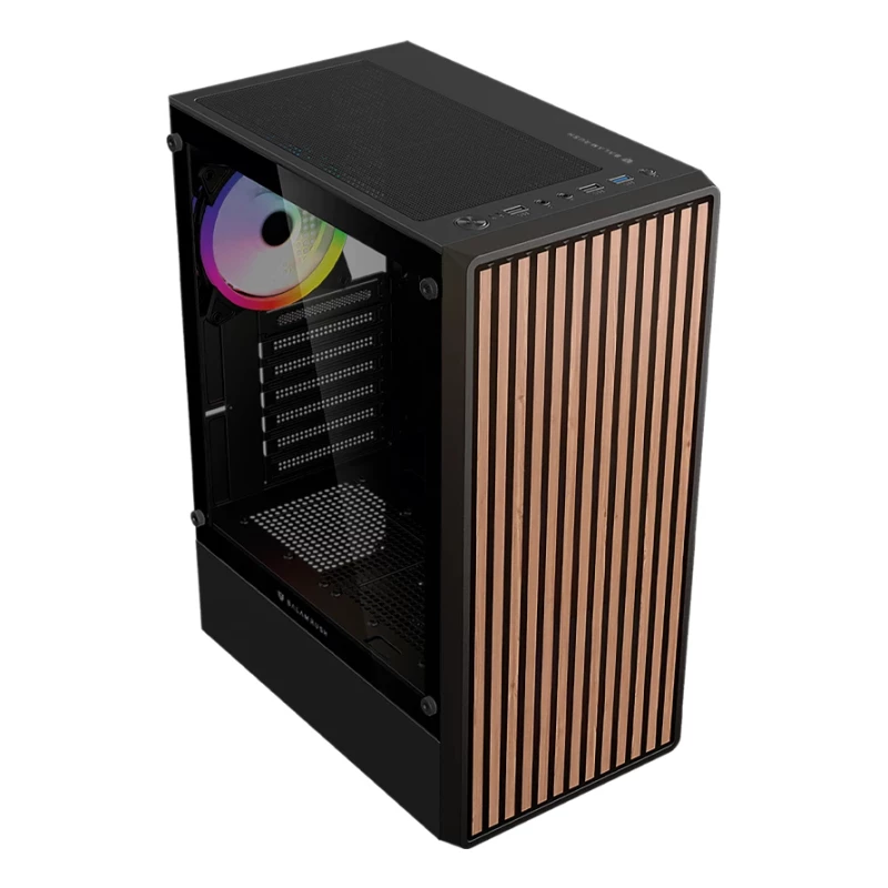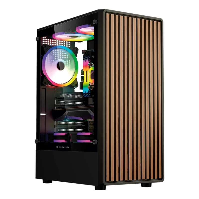 Balam Rush BR-943949. Factor de forma: Midi Tower, Tipo: PC, Color del producto: Negro, Madera. Ventiladores frontales instalados: 3x 120 mm, Diámetro de ventiladores frontales soportados: 120 mm, Ventiladores traseros instalados: 1x 120 mm. Tamaños de disco duro soportados: 3.5", Factor de formato SSD: 2.5". Ancho: 195 mm, Profundidad: 330 mm, Altura: 440 mm. Ancho del paquete: 240 mm, Largo del paquete: 485 mm, Alto del paquete: 385 mm