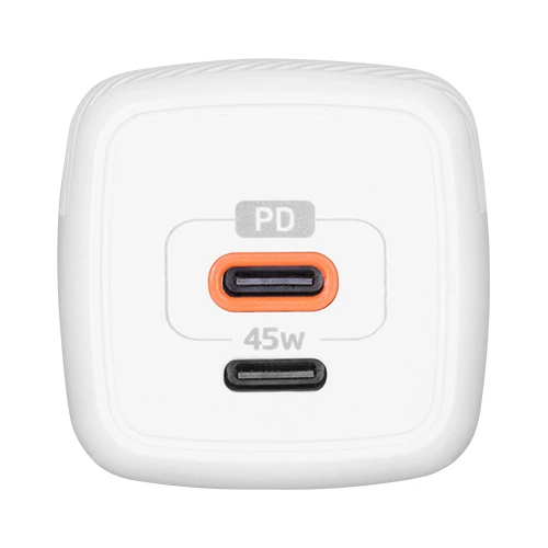 El cargador de pared Quick Charge AU-402 de Vorago que te ofrece llevar la batería de tus dispositivos de 0 a 100 de forma rápida, segura y eficiente. Con 2 puertos USB Tipo C y una construcción ligera y compacta, es ideal para llevarlo siempre contigo.