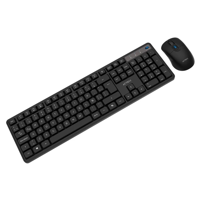 Acteck AC-943505. Formato del teclado: Tamaño completo (100%), Tecnología de conectividad: Alámbrico, Interfaz del dispositivo: RF inalámbrico, Interruptor del teclado: Interruptor de membrana, Diseño de teclado: QWERTY, Uso recomendado: Universal. Color del producto: Negro. Ratón incluido