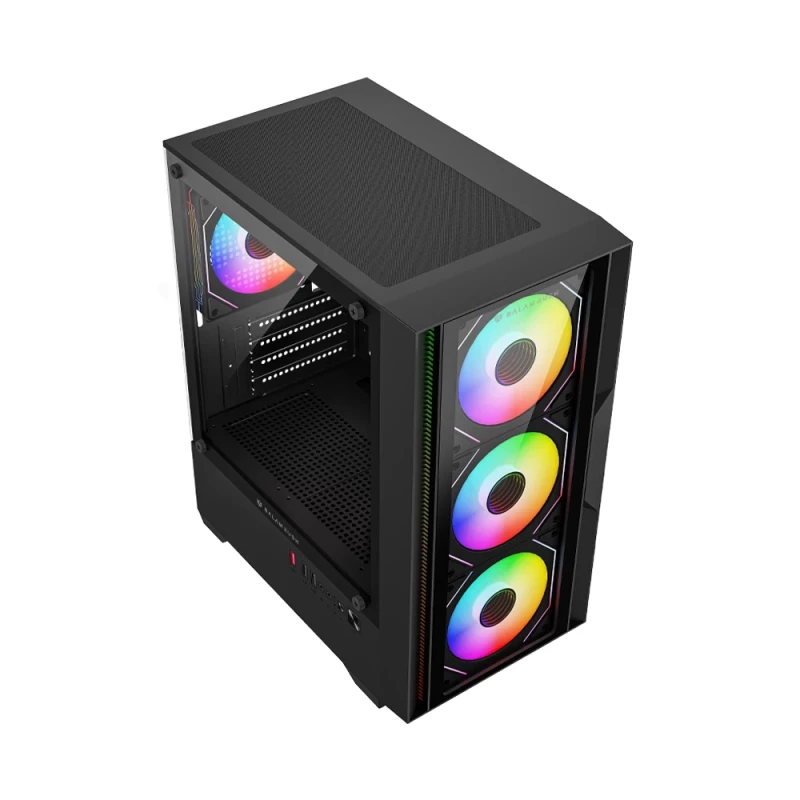 Balam Rush BR-943888. Factor de forma: Mini Tower, Tipo: PC, Color del producto: Negro. Factores de forma de la fuente de alimentación compatibles: ATX. Ventiladores frontales instalados: 3x 120 mm, Diámetro de ventiladores frontales soportados: 120 mm, Ventiladores traseros instalados: 1x 120 mm. Tamaños de disco duro soportados: 2.5,3.5". Ancho: 195 mm, Profundidad: 320 mm, Altura: 395 mm