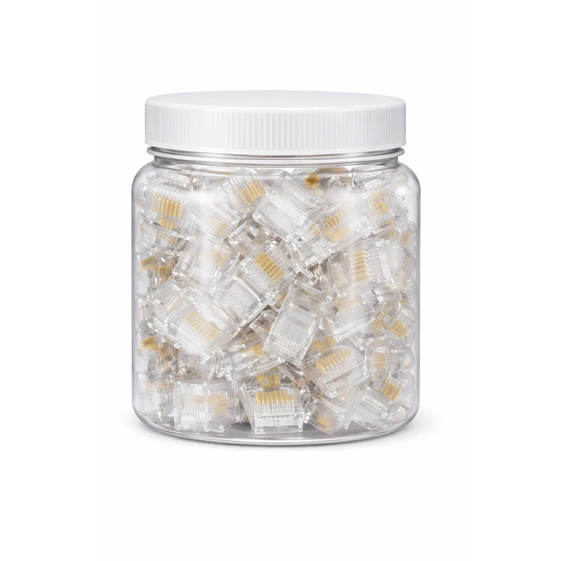 Bote 100 Plugs RJ45 Cat6 Pass Through TCE LN-NET-RJCAT6-30u-PASS Chapado Oro 30 Micras Conector de Red UTP Sin Blindaje para Redes Gigabit Ethernet