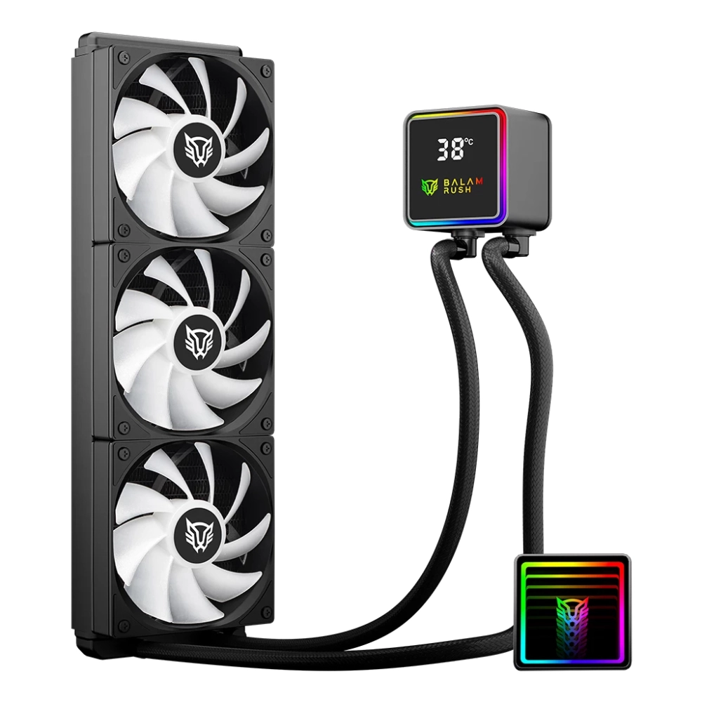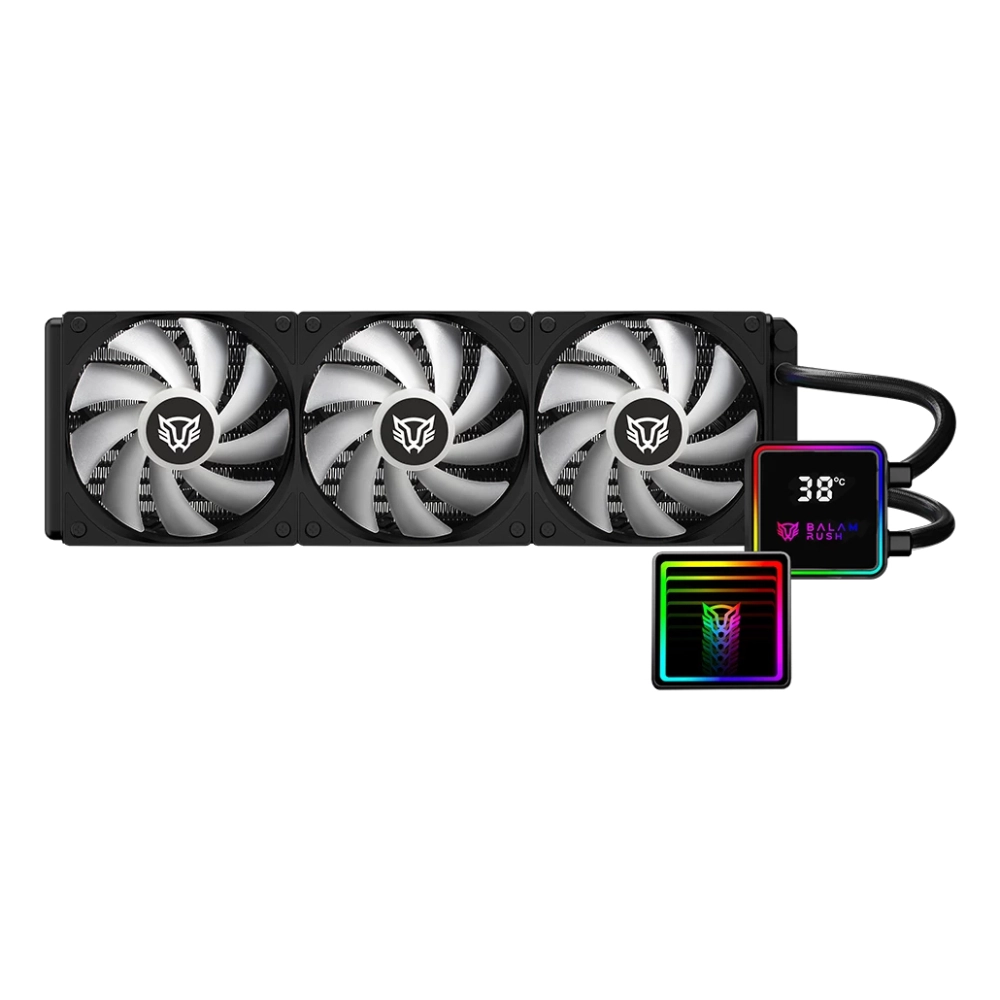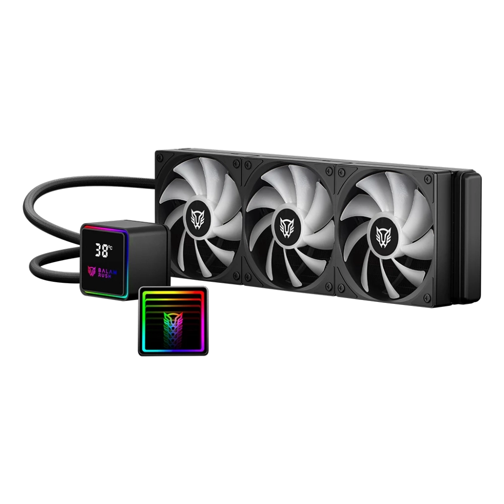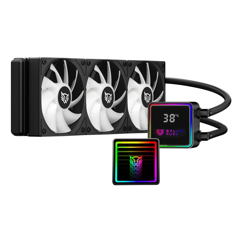 Balam Rush BR-944069. Tipo: Refrigerador de líquidos todo en uno, Diámetro de ventilador: 12 cm, Presión máxima de aire: 2.2 mmH2O. Ancho: 393 mm, Profundidad: 512 mm, Altura: 120 mm. Color del producto: Negro