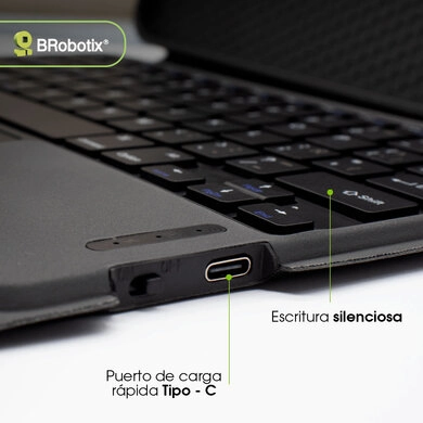 BRobotix 6007860. Diseño de teclado: QWERTY, Dispositivo apuntador: Touchpad. Compatibilidad de marca: Apple, Compatibilidad: iPad 11", Color del producto: Negro. Tecnología de conectividad: Inalámbrico, Interfaz del dispositivo: Bluetooth. Fuente de energía: USB. Ancho: 20 mm, Profundidad: 250 mm, Altura: 2 mm