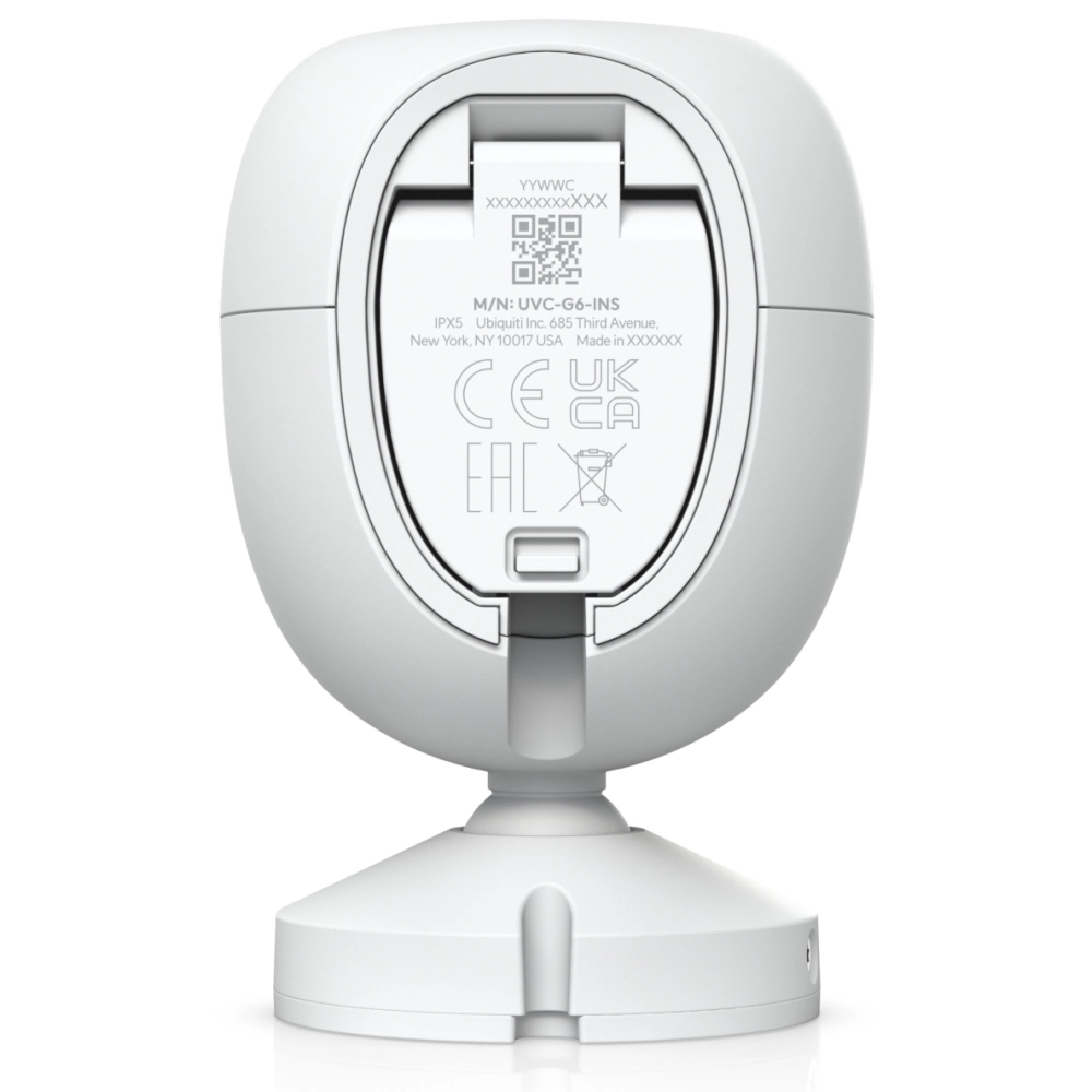 Ubiquiti Instant G6. Tipo: Cámara de seguridad IP, Colocación compatible: Interior y exterior, Tecnología de conectividad: Inalámbrico. Tipo de montaje: Pared, Color del producto: Blanco, Material de la cubierta: Policarbonato (PC). Ángulo de visión del objetivo, horizontal: 109.9°, Ángulo de visión del objetivo, vertical: 56.7°, Ángulo de visión de la lente, diagonal: 134.1°. Tamaño del sensor óptico: 25.4 / 1.8 mm (1 / 1.8"). Distancia de visión nocturna: 6 m, Tipo de LED: IR