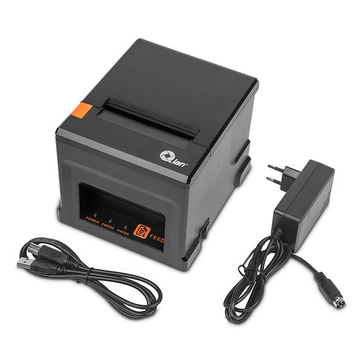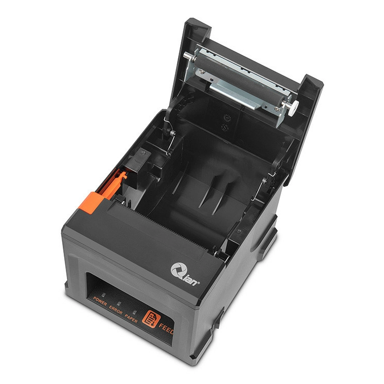 Qian QOP-T80BL-RI. Tecnología de impresión: Térmico, Tipo: Impresora de TPV, Resolución máxima: 203 x 203 DPI. Grosor de la impresión: 0.06 - 0.08 µm, Máximo ancho de impresión: 7.2 cm. Tecnología de conectividad: Inalámbrico y alámbrico. Código de barras incorporado: Code 128 (A/B/C), Code 39, Code 93, EAN13, EAN8, UPC-A, UPC-E, Memoria interna: 0.256 MB, Durabilidad de auto-cortador: 1 million cuts. Color del producto: Negro