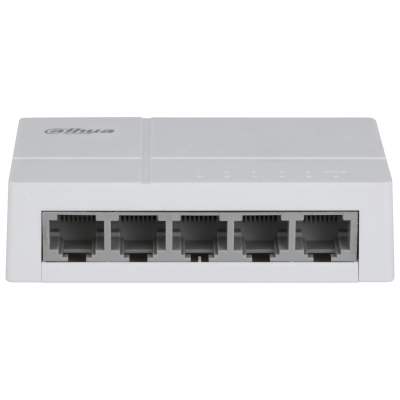 Dahua Technology PoE DH-SF1005L. Tipo de interruptor: No administrado. Puertos tipo básico de conmutación RJ-45 Ethernet: Fast Ethernet (10/100), Cantidad de puertos básicos de conmutación RJ-45 Ethernet: 5. Tabla de direcciones MAC: 2000 entradas, Capacidad de conmutación: 1 Gbit/s. Voltaje de entrada DC: 5 V. Energía sobre Ethernet (PoE). Factor de forma: Escritorio