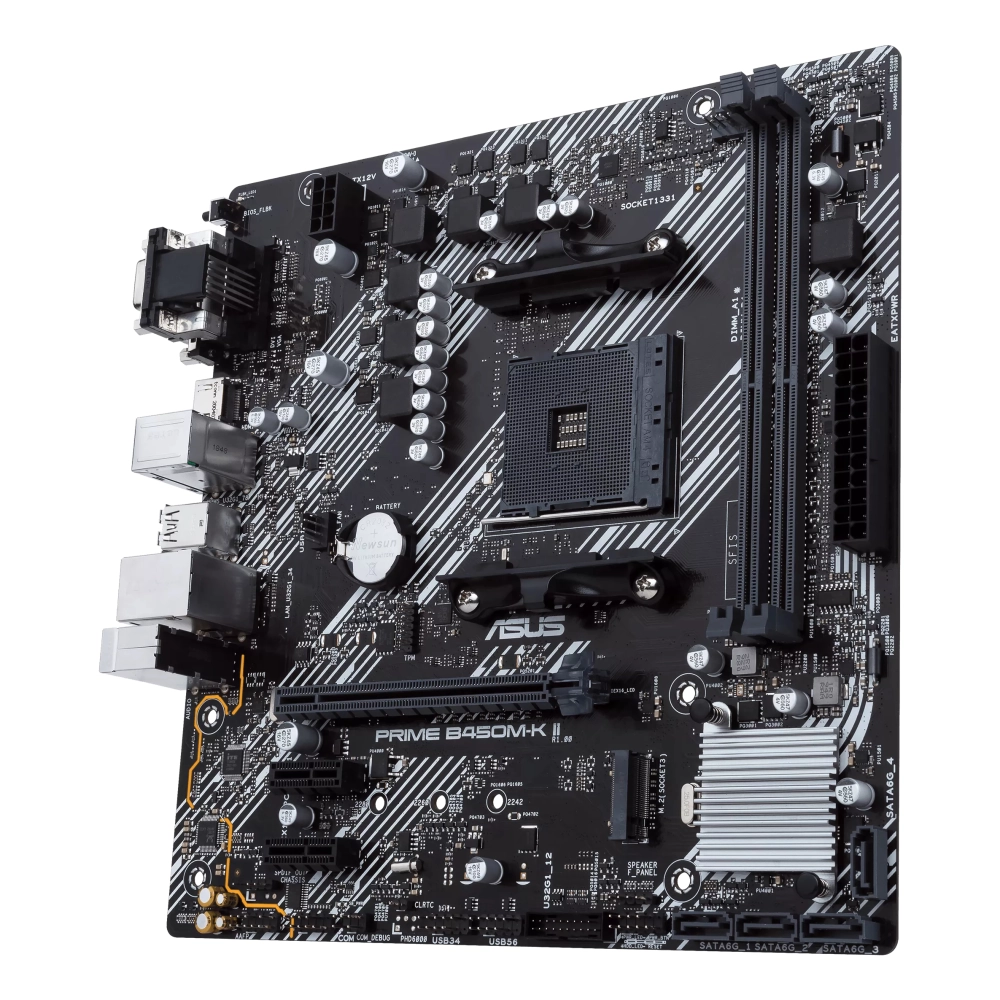 ASUS PRIME A520M-K/CSM. Fabricante de procesador: AMD, Socket de procesador: Enchufe AM4, Procesador compatible: AMD Ryzen 5000 Series, AMD Ryzen 4000 Series, AMD Ryzen 3000 Series. tipos de memoria compatibles: DDR4-SDRAM, Memoria interna máxima: 64 GB, Tipo de ranuras de memoria: DIMM. Interfaces de disco de almacenamiento soportados: M.2, SATA III, Tipos de unidades de almacenamiento admitidas: HDD & SSD, Niveles RAID: 0, 1, 10. Tipo de conector USB: USB tipo A. Tipo de interfaz ethernet: Gigabit Ethernet, Controlador LAN: Realtek RTL8111H