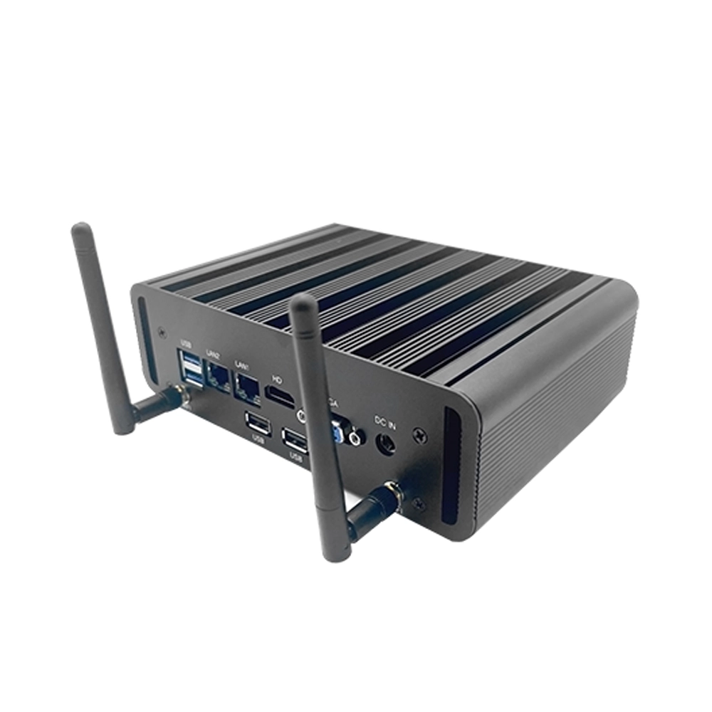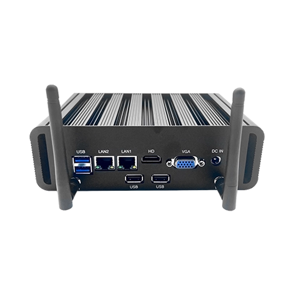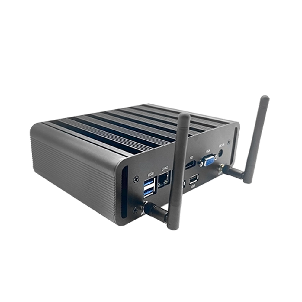 Procesador Intel Celeron J6412 con 4 núcleos y frecuencia de 2.6 GHz sobre un chasis de aluminio de grado industrial. Construcción sin ventilador con fuente de alimentación de 60 W, conectividad Ethernet 10/100/1000 Mbps y memoria DDR4 de 8 GB para procesamiento de datos en entornos robustos.